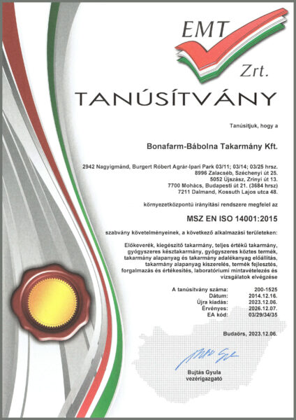 Az MSZ EN ISO 14001:2015 szabvány szerinti Környezetközpontú Irányítási Rendszer alkalmazási területe:
