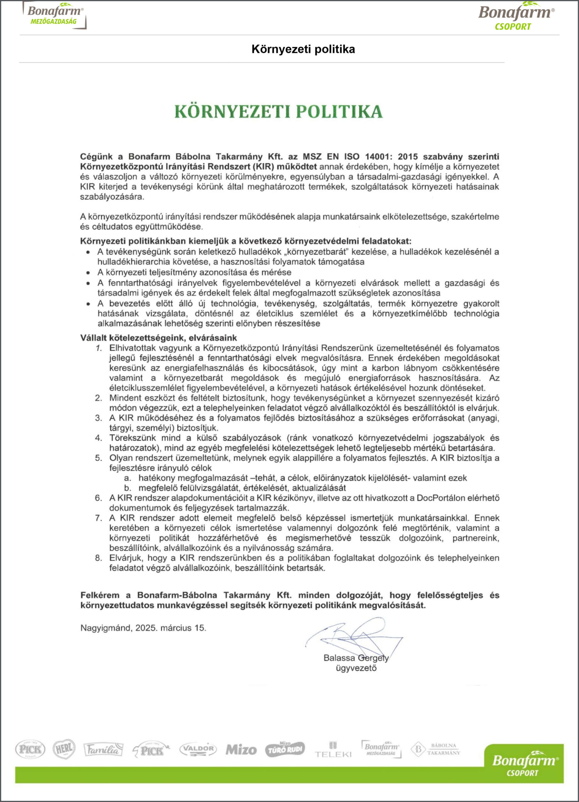A természet az emberi lét alapja, ezért létfontosságú, hogy védelmezzük természeti erőforrásainkat, a vizet, a levegőt, a természeti élőhelyeket. Cégünk nagy hangsúlyt fektet a környezetvédelemre, hiszen a jelen és jövő nemzedékének egészsége és életkörülménye függ attól, hogy milyen mértékben óvjuk környezetünket. Fő feladatunknak tekintjük a környezetre veszélyes ártalmak, károsodások okainak felismerését, azok megelőzését, illetve megszüntetését.